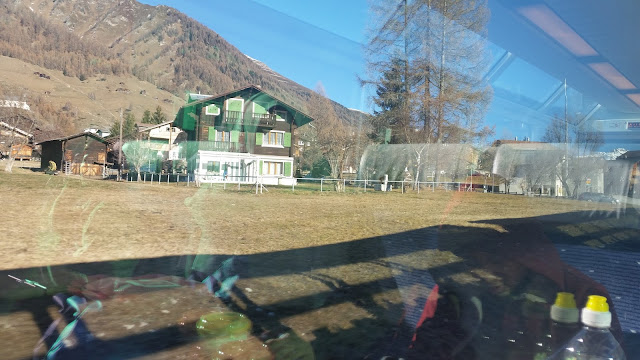 Melalui terowong terpanjang di Andermatt. Pemandangan yang paling cantik bagi kami ialah dari Andermatt ke Disentis. Puncak gunung yang diliputi sajli, rumah-rumah kayu yang tidak bercat, semuanya kelihatan sangat cantik. Longest tunnel was at Andermatt and the most spectacular view was from Andermatt to Disentis, capturing snowy mountain top (glacier) and unpainted wooden houses along the way.